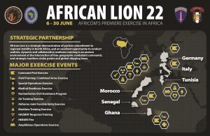 يتضمن برنامج “الأسد الإفريقي 2022” مناورات عسكرية برية وجوية وبحرية وتمارين للتطهير البيولوجي والإشعاعي والنووي والكيميائي. وتحتضنها مدينة القنيطرة، شمال الرباط، بالإضافة إلى عدة مواقع في الجنوب بينها منطقة المحبس عند الحدود مع الجزائر، بحسب ما أفادت القوات المسلحة الملكية في بيان.