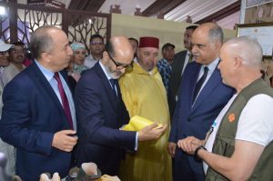 وقص والي الجهة والوفد المرافق له الذي ضم عُمال الأقاليم بالجهة ورؤساء المصالح الأمنية والمدنية والعسكرية، شريط افتتاح المعرض الوطني، والذي يضم أكثر من 120 مشاركة ومشارك يشملون صناع فرادى، ومقاولات حرفية، وتعاونيات، وفاعلين متخصصين في العتاد التقني للجلد من مختلف المدن المغربية.