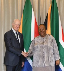 والتقى ستافان دي ميستورا، يوم أمس الأربعاء في بريتوريا، وزيرة الشؤون الخارجية ناليدي باندور، وعقب اللقاء اكتفت دبلوماسية جنوب إفريقيا بالإعلان بإيجاز عن الاجتماع مع المبعوث الأممي، دون تقديم مزيد من التفاصيل.