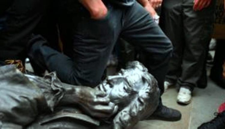 أسقط متظاهرون تمثالًا لتاجر رقيق في مدينة بريستول وألقوا به في النهر في اليوم الثاني من الاحتجاجات التي خرجت ضد العنصرية في بريطانيا.