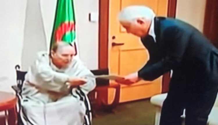 شاهد الظهور الأخير على التلفزيون الرسمي للرئيس الجزائري بوتفليقة وهو يقدم استقالته