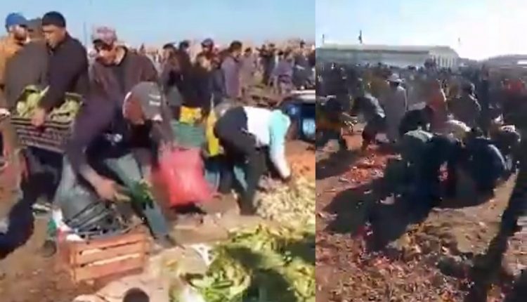 هاجم العديد من المواطنين في أحد الأسواق الأسبوعية بمدينة القنيطرة اليوم الأحد شاحنات وعددا من بائعي الخضر واستولوا على سلعهم، بينما اضطر بعض الخضارين إلى الفرار وترك سلعته بعد مباغثته من طرف العشرات من الأشخاص الذين سارعوا إلى الاستيلاء على خضر البائعين.