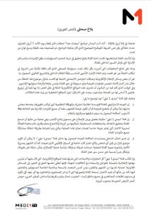 “ميدي 1 تيفي” توضح بشأن الخطأ الذي طال صفة أمير المؤمنين وتهدد بالقضاء+وثيقة