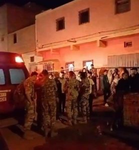 عناصر المينورسو عند حضورهم إلى مكان القصف في مدينة السمارة ليلة السبت الأحد 28 أكتوبر 2023