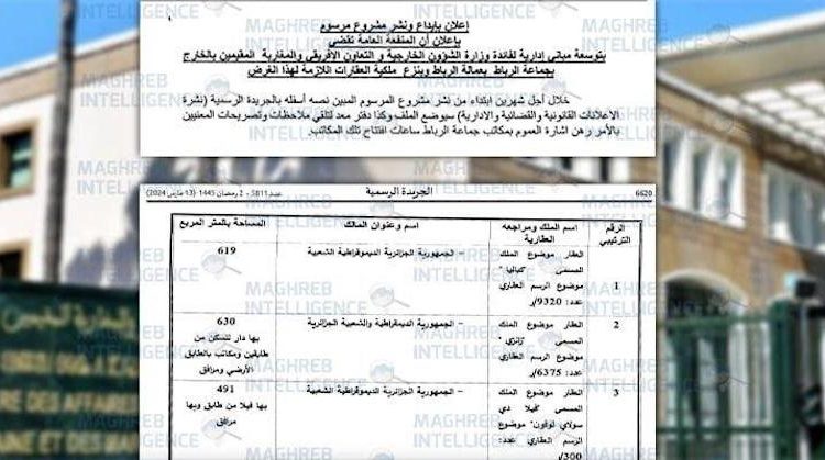 باشرت الحكومة المغربية في الآونة الأخيرة مسطرة نزع مِلكية عقارات محيطة بمقر وزارة الشؤون الخارجية بالرباط بهدف توسيع مقرات المصالح التابعة لها، من بينها عقارات تعود ملكيتها للدولة الجزائرية.